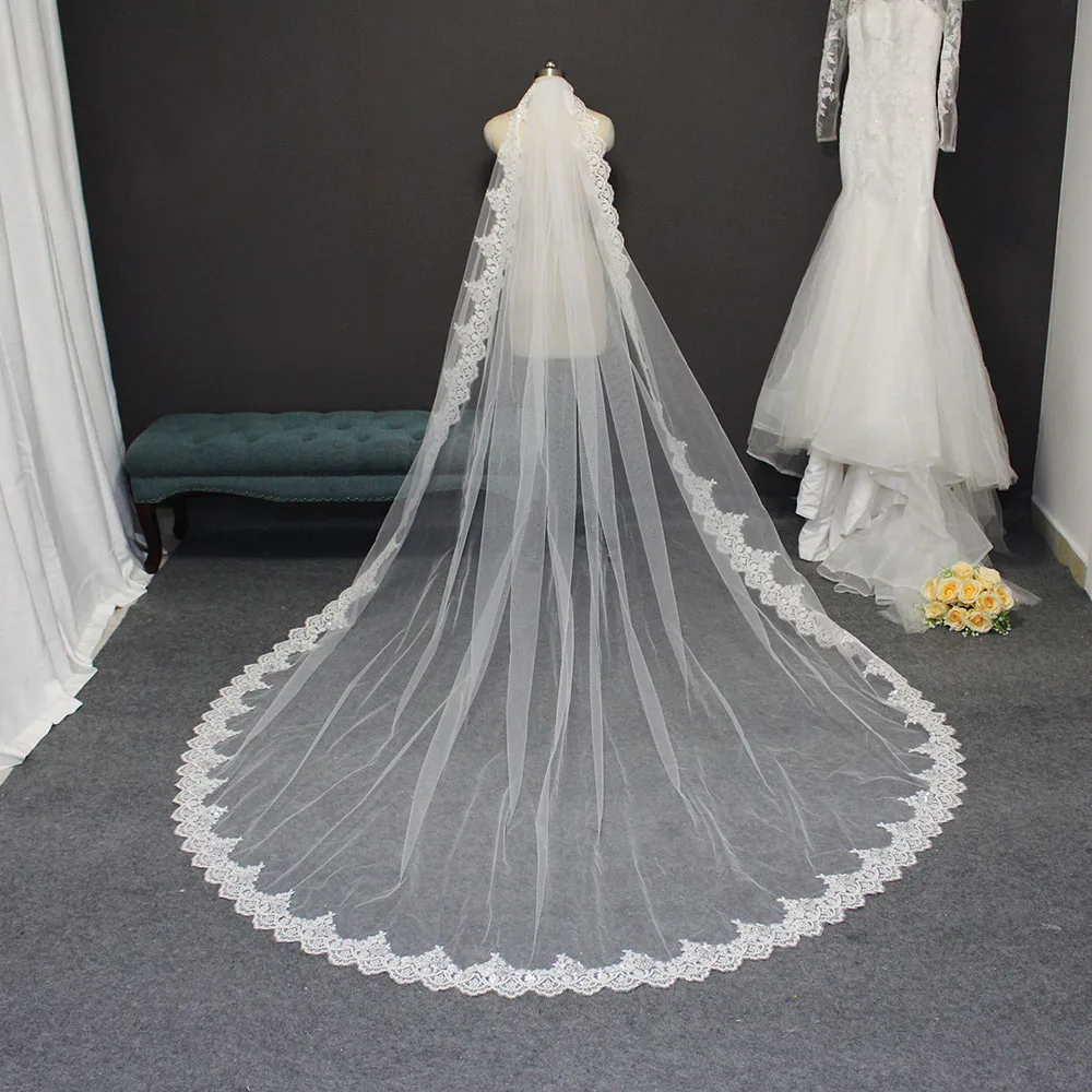 Get Bling Sequins Lace Long Wedding Veil with Comb 3 Meters Cathedral Bridal Veil One Layer High Quality Veil Wedding Accessories